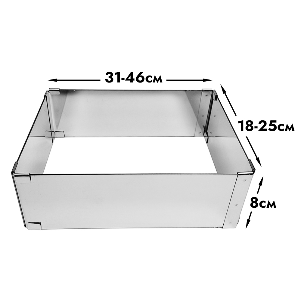 Раздвижной металлический прямоугольник для выпечки и сборки кондитерских изделий. Для профессионального использования.