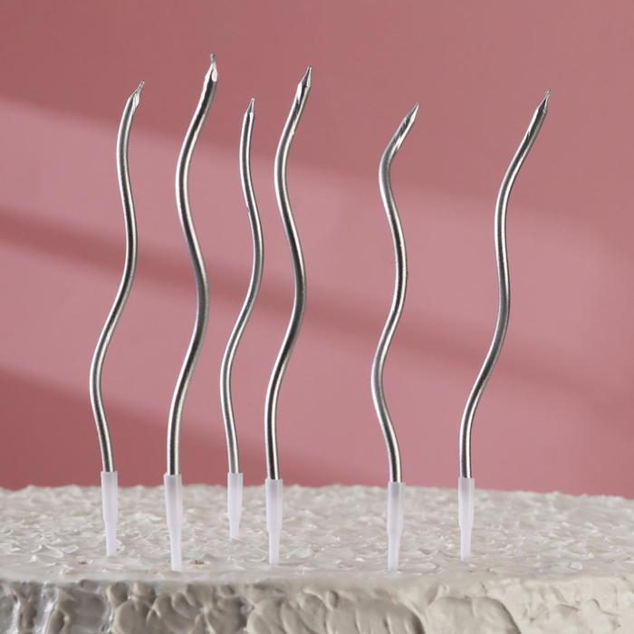 Свечи для торта "Серпантин" 6 шт, коктейльные, серебристые