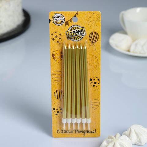 Свечи в торт "Ройс", 6 шт, высокие, 13 см, золотой металлик