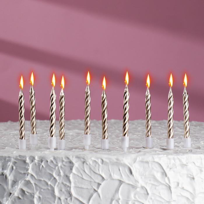 Свечи в торт "Спираль", 10 шт, средние, 5 см, металлик